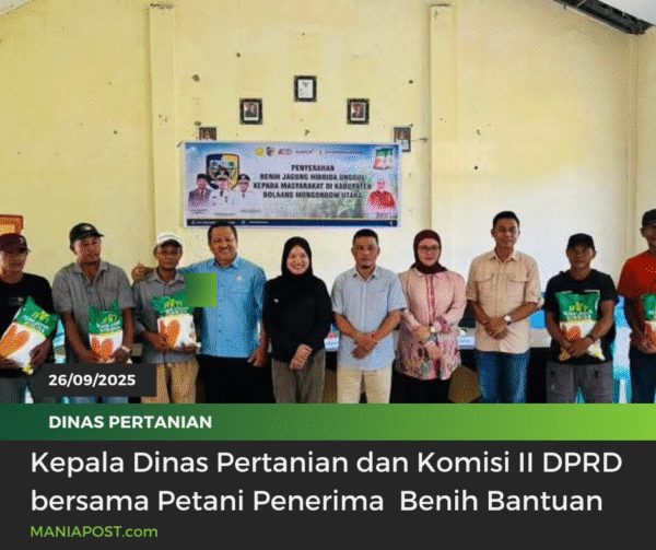MANIAPOST.COM, BOLMUT – Dinas Pertanian Kabupaten Bolaang Mongondow Utara kembali salurkan bantuan benih jagung di kecamatan Sangkup, pada Jumat (26/09/2025).