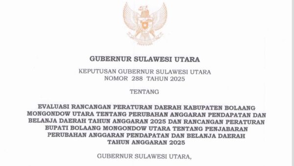 MANIAPOST.COM, BOLMUT – Gubernur Sulawesi Utara (Sulut) resmi menerbitkan Surat Keputusan (SK) Anggaran Pendapatan dan Belanja Daerah Perubahan (APBD-P) Bolmut tahun anggaran 2025.